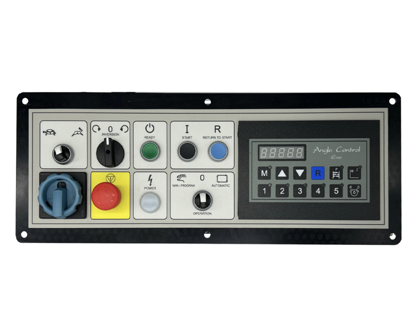 L’Angle Control è un accessorio disponibile per tutte le piegaferro e combinate alimentate con centralina trifase e non può essere installato successivamente. Questo pannello comandi è abbinabile anche ad un motore a 2 velocità.